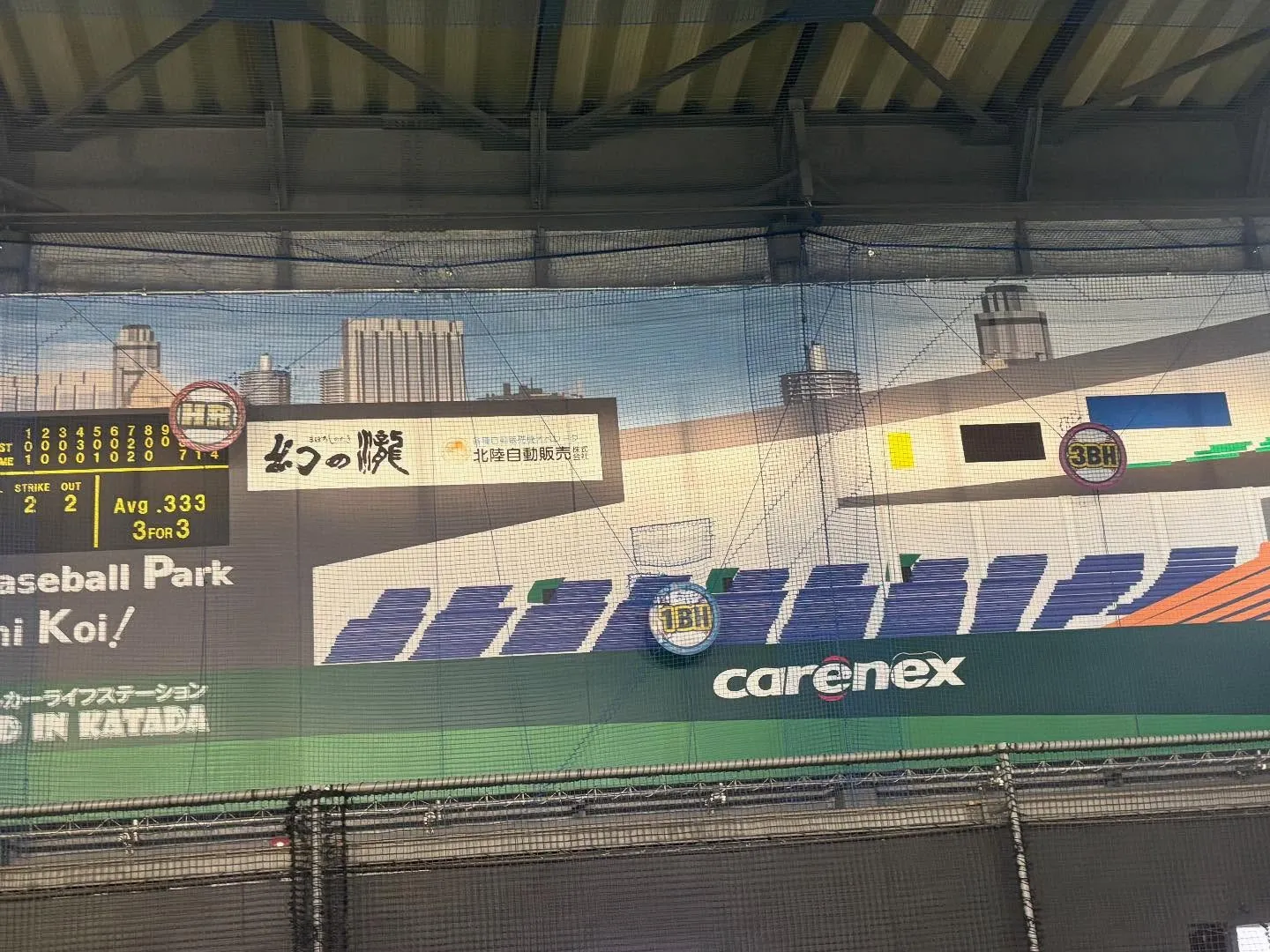 高反発バットのビョンド•レガシーによる超過激な打球に耐えきれず破損、修理中で皆様にご迷惑をおかけしておりました、HR、3BHのバッティングポイントボードが本日より完全復活致します。
